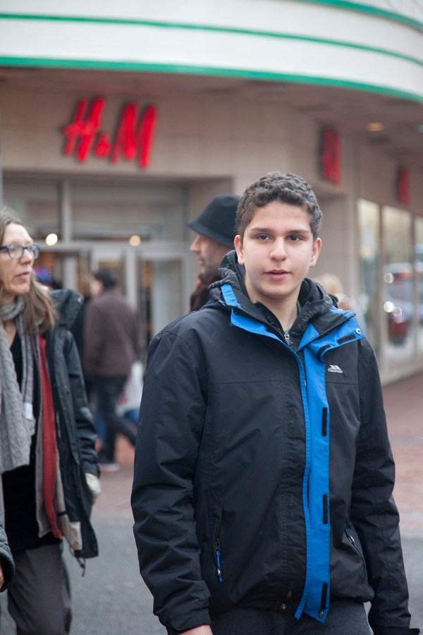 MB002.PH4EYV-2 I have kept the foreground sharp, but blurred the background slightly so that the ‘H&M’ sign looks more like ‘HIM’. This was classic Cartier Bresson technique; I saw the possibilities of the sign, set up and waited (quite some time) for the boy to come past. Settings- 1/180sec, f4, 105mm, ISO 1600.