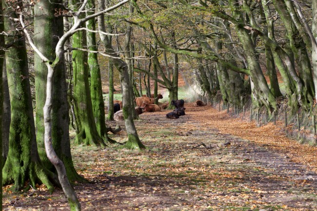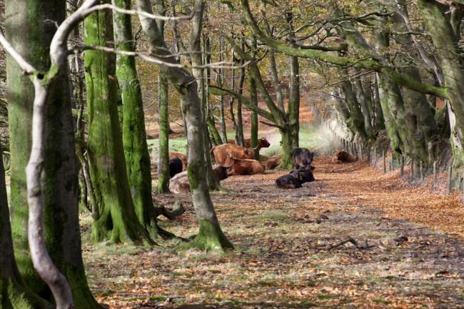 To get the best results from this exercise, I felt that I had to use my longest lens. Although not the best quality lens, its superior range best shows the results of this exercise. So I fitted my 75-300 lens and set off for the Quantocks to look for some shots with depth to them. My plan was to walk a section of ‘The Coleridge Way’. After only ten minutes I stumbled across a small herd of Scottish Highland cattle.
