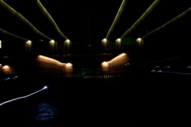 To make it clear what was being recorded, I went outside at night and took a photograph of some isolated lighting. What appears to be happening is that the light ‘tails’ all seem to be travelling from the centre of the frame, fanning out.