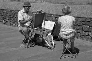 The follow images were all shot in the ‘tired’ victorian seaside town of Minehead, on the Somerset north coast. Although there are only two close up portraits, I am still pleased with the outcome, and don’t feel as though I’ve ‘dodged the bullet’. As an ensemble I think that the images work hand in glove with the B&W format to give exactly the right feel. There are a few weak image which, if they stand alone, have little to say (the architectural lion, and the couple holding hands). I also think that maybe one or two could be strengthened with the use of colour (the hats, and possibly the poster). The last portrait was just too good to leave out, having worked so hard to strike up a ‘relationship’ with the man.