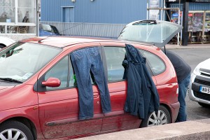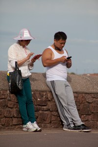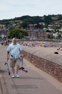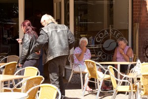 The following images were all taken in the same location as the ones above, only in colour. I think that by using colour, it broadened the horizon of things I could look for i.e bold colours, humour and things in general that would be lost in B&W, for instance the buckets and spades.Again there are some weak shots; The bikes, which lack something, the lovers, I needed to be much closer to convey the intimacy. Over all though I think I have achieved a collection of images that are (dare I say) in the style of Martin Parr, which is what I’d had in mind from the beginning, once I’d chosen to do a seaside town. I feel as though I have brought a fair bit of humour into the exercise; The runners/marshalls collecting the signs, the Rockers and older ladies and the man in the wheelchair. After having taken the colour shots, I felt a lot more worn out, having had to have eyes in the back of my head to spot everything. The B&W shots were a lot more sedentary in the making.